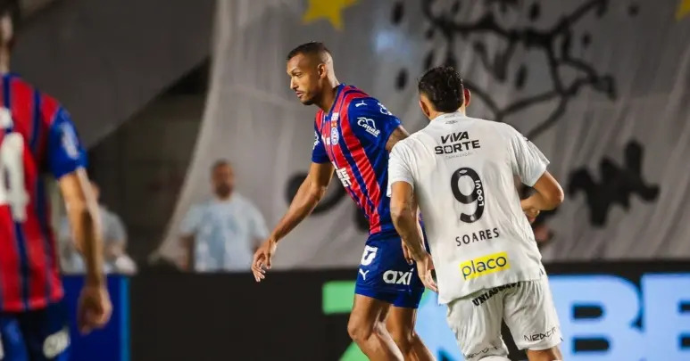 No fim do segundo tempo, Bahia arranca empate diante do Santos no Brasileirão