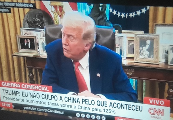 “Com base na falta de respeito que a China demonstrou aos mercados mundiais, estou aumentando a tarifa cobrada da China pelos EUA para 125%. Em algum momento, esperançosamente em um futuro próximo, a China perceberá que os dias de exploração dos EUA e de outros países não são mais sustentáveis ??ou aceitáveis”, informou Trump em uma rede social. :: LEIA MAIS »