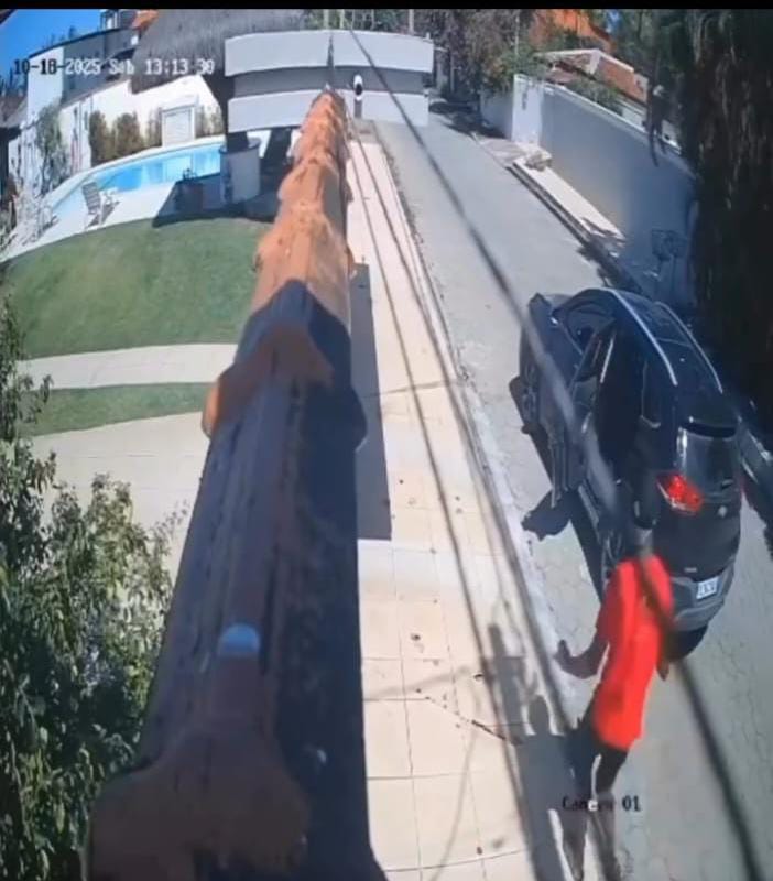Nas cenas de uma câmera de vídeo, foi visto um elemento descendo de um carro preto e correndo entrando em um beco.