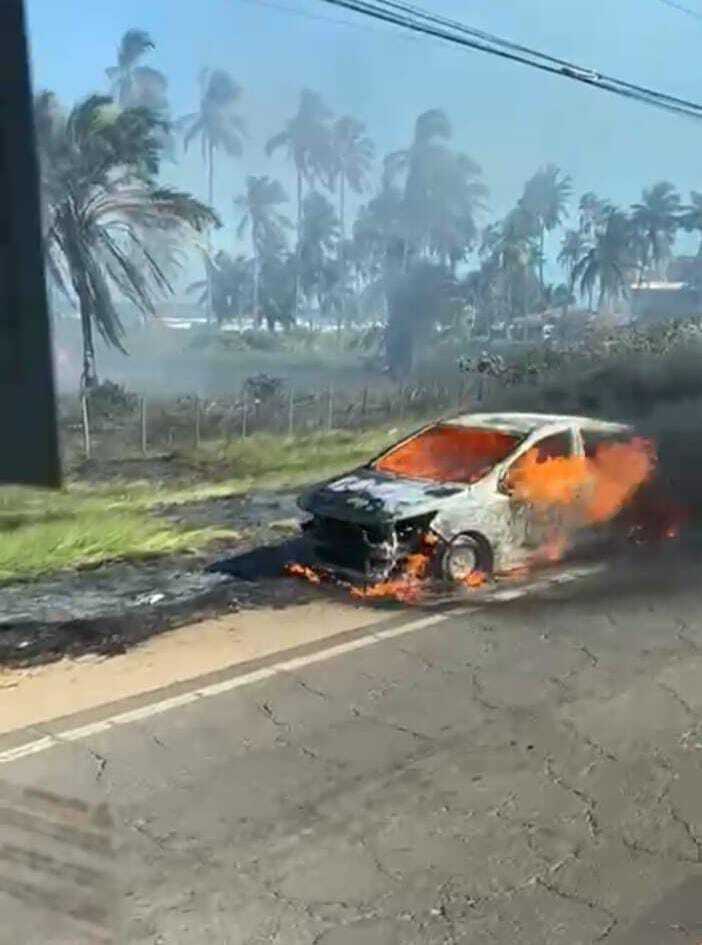ILHÉUS: Carro pega fogo e fica completamente destruído