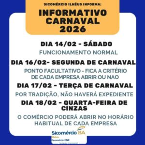 ILHÉUS: Fique atento para o horário do comercio neste carnaval.